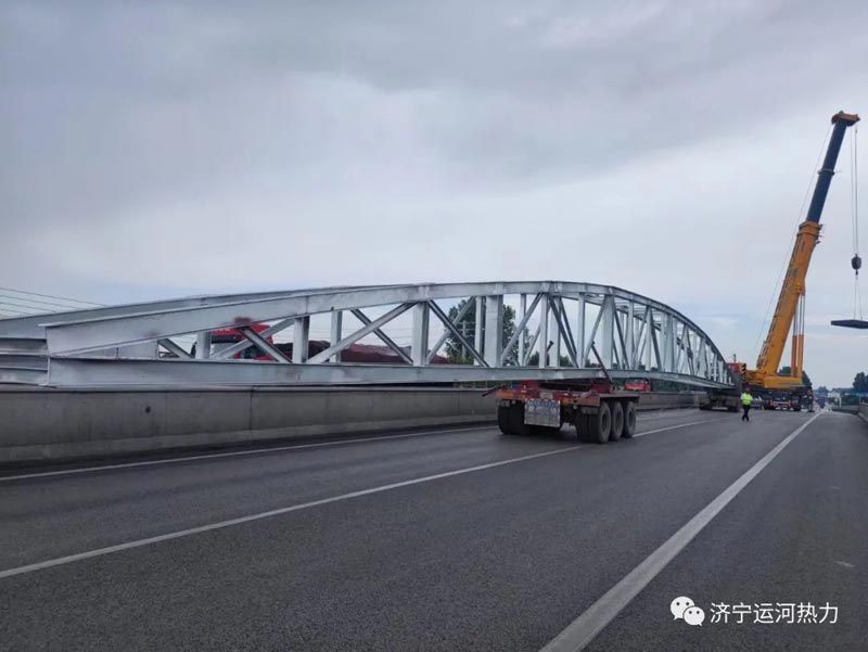 隨著指揮員的一聲哨響,2022年6月14日11點(diǎn)19分,兩部碩大的吊車緩緩放下鋼索,跨度為51米的跨河供熱主管網(wǎng)加固支架順利吊裝完成,這標(biāo)志著濟(jì)寧運(yùn)河熱力有限公司的跨河DN1200的供熱主管網(wǎng)的安全隱患徹底消除,同時(shí)也為濟(jì)寧內(nèi)陸主城港區(qū)航道的升級(jí)改造掃除了卡脖子工程。