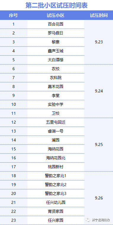 第三批試壓小區(qū)及新接入小區(qū)的試壓時(shí)間另行通知,請(qǐng)廣大用戶留意公眾號(hào)發(fā)布信息及單元通知欄張貼信息。